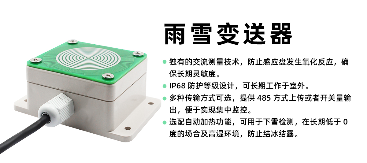 生產(chǎn)生活中,我們需要了解是否有降雨或降雪發(fā)生,及時(shí)了解氣象變化,盡早的趨利避害。但在一些較為遼闊的地區(qū)或不方便到達(dá)的地方,難以靠人工去一一查看是否下雨或下雪,所以會(huì)借助一些傳感器來幫助我們實(shí)時(shí)了解氣象的變化。其中,對(duì)監(jiān)測是否有降雨或降雪發(fā)生的儀器是雨雪變送器。