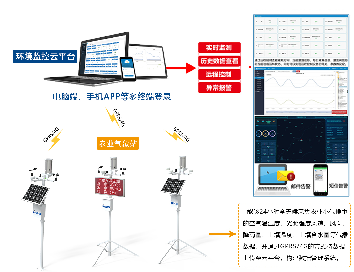 2、農(nóng)業(yè)氣象站體積小、重量輕、低功耗低成本、易廣泛網(wǎng)格化部署,免維護(hù)、易安裝、無(wú)移動(dòng)部件,可選市電、太陽(yáng)能供電,可選有線、無(wú)線通信,如使用太陽(yáng)能系統(tǒng)方式供電、無(wú)線通信,可保證連續(xù)一周陰雨天情況下無(wú)斷電穩(wěn)態(tài)工作,并節(jié)省鋪設(shè)電纜、光釬費(fèi)用。