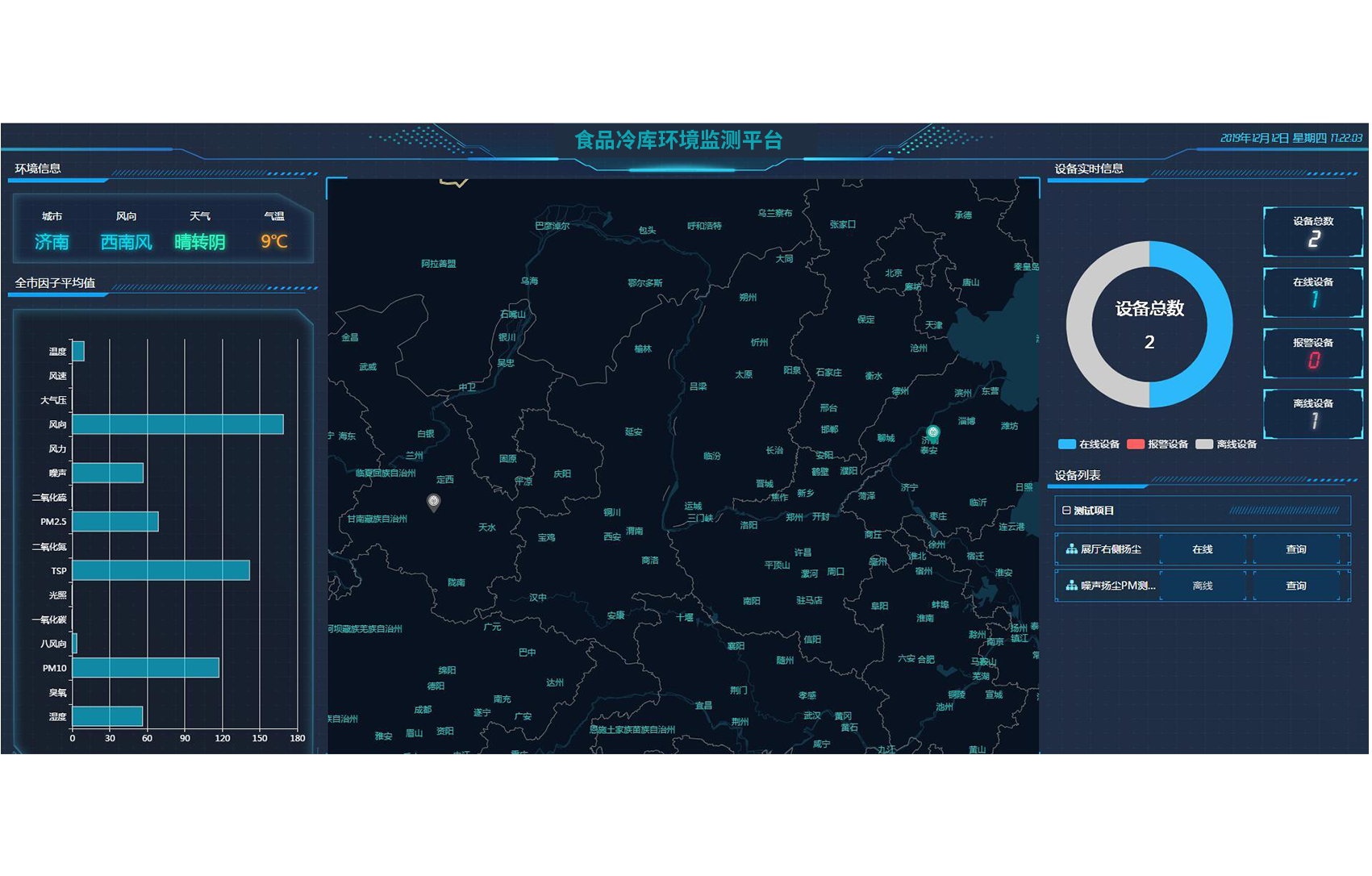 迎合倉儲智能化、無人化的大趨勢,建大仁科合理運用智能化控溫設備、信息識別系統、自動溫度控制系統等智能化應用創建的食品冷庫環境監測系統,能夠通過數據實時采集、上傳、分析、存儲,對冷庫進行實時遠程監管。