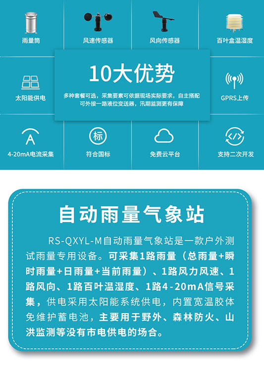 默認脈沖當量:0.5mm 可上傳瞬時雨量、日雨量、當前雨量及累計雨量值。 |