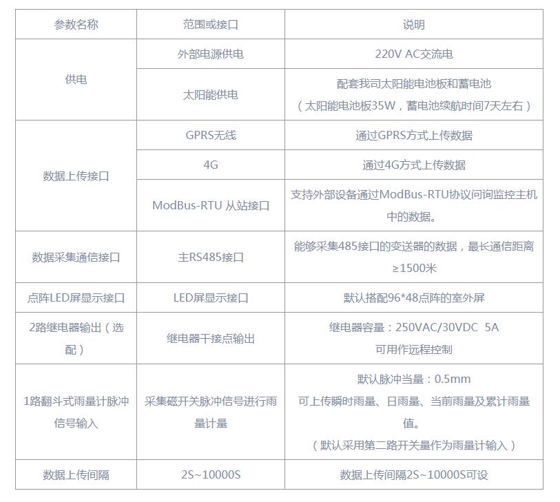 具有1路ModBus-RTU從站接口,可外接用戶自己的監控主機、PLC、組態屏或組態軟件,還可用作外接192*96的室外屏(選配)。